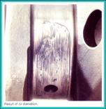 • 由于軸瓦中嵌入了較硬的磨粒,使得此軸頸上有一圈很深的磨痕。