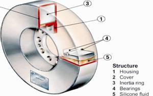 燃燒的動力可引起曲軸扭轉(zhuǎn),此為扭力震動.可導(dǎo)致曲軸變形,所以需限制此扭力震動至.