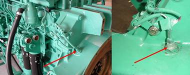 康明斯Cummins QSK23發(fā)動機(jī)機(jī)油壓力傳感器裝在發(fā)動機(jī)左側(cè)主油道上.