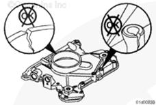對于配備非唇形曲軸前油封的發(fā)動(dòng)機(jī),使用細(xì)砂布去除所有拉痕和毛刺。如果曲軸前端密封表面損壞,沒有可用的承磨襯套。