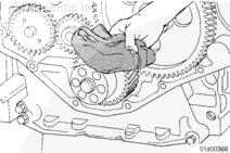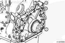 注: 正確支撐前齒輪室蓋的機(jī)油油封法蘭,防止損壞機(jī)油油封和前齒輪室蓋。