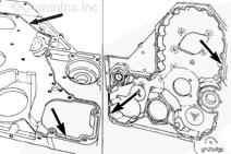 安裝固定油底殼與齒輪室殼體的 4 個(gè)螺栓。扭矩值:  47  n.m  [35 ft-lb]
